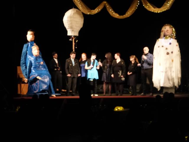 Hosté nebyli malého vzrůstu. Jen zasvěcený si dovede představit, kolik práce příprava těchto loutek stála. Vždyť taky jejich putování od brány k divadlu obstarávalo spousta lidí. Deset i patnáct jich bylo třeba k tomu, aby rozpohybovalo loutku. Klienti, zaměstnanci, mnoho dobrovolníků. Tito lidé masky připravovali, tito lidé své dílo hrdě nesli. Skvěle ustrojení, vždyť je to slavný bál. Vždyť celoroční soužití v Apropu letos vrcholí.