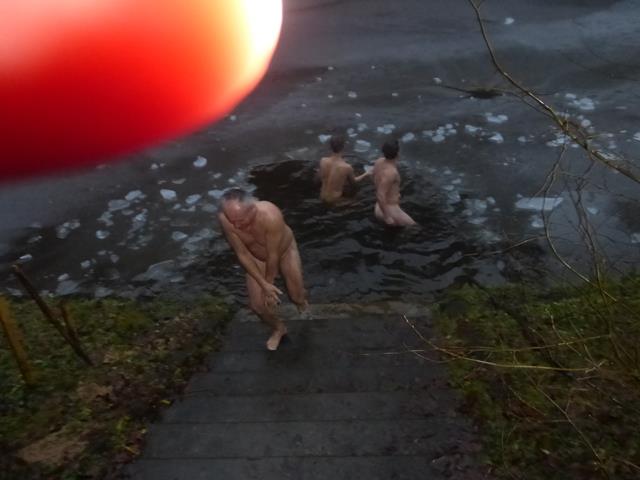 Led se letos musel se prosekávat. Teplota vzduchu už v 7.20 hod 7 stupňů celsia. Proč tak brzo? Bývá tam klid. Plavcům se nepletou při vstupu do vody psi, ani tam nekřičí mladí, kteří tím, že se namočí, jsou si za hrdiny. Zato je radost takhle jěště za tmy podat si ruku s přáteli a říct si teplé lidské slovo bez frází.
